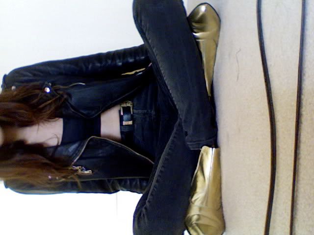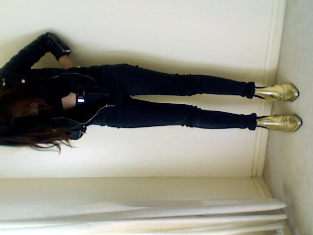 leather jacket HK 3 years back, vintage Versace couture jeans, gold boots
