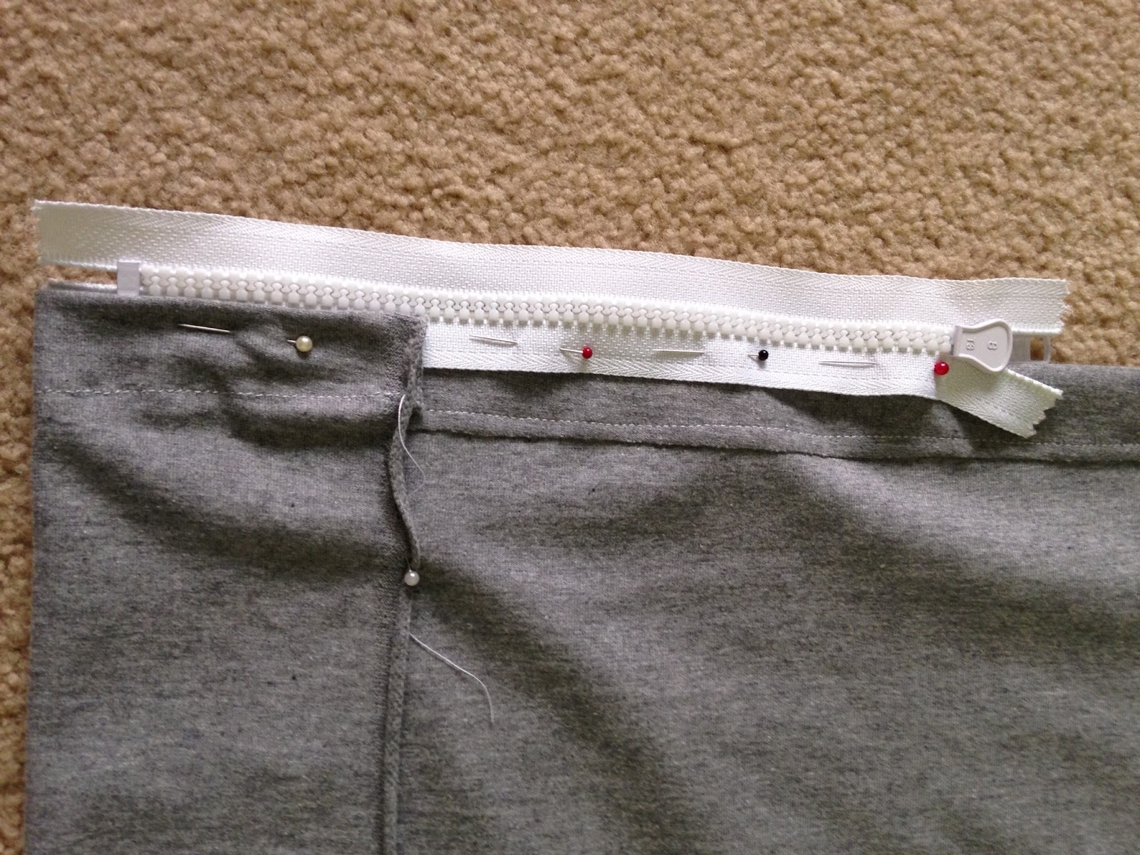 Now your sides should be joint by the zip! Then you will sew the top and bottom hem through the machine. After this, shape your skirt to your body for a flattering shape but taking in what is needed on the opposite side where there isn't a seam yet.